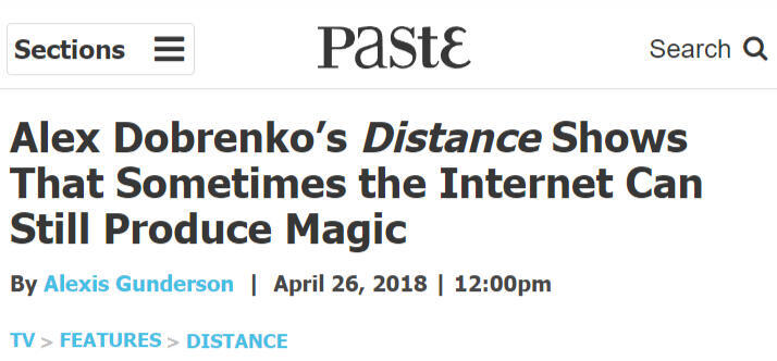 - Paste Magazine ("Alex Dobrenko's Distance Shows That Sometimes The Internet Can Still Produce Magic "),